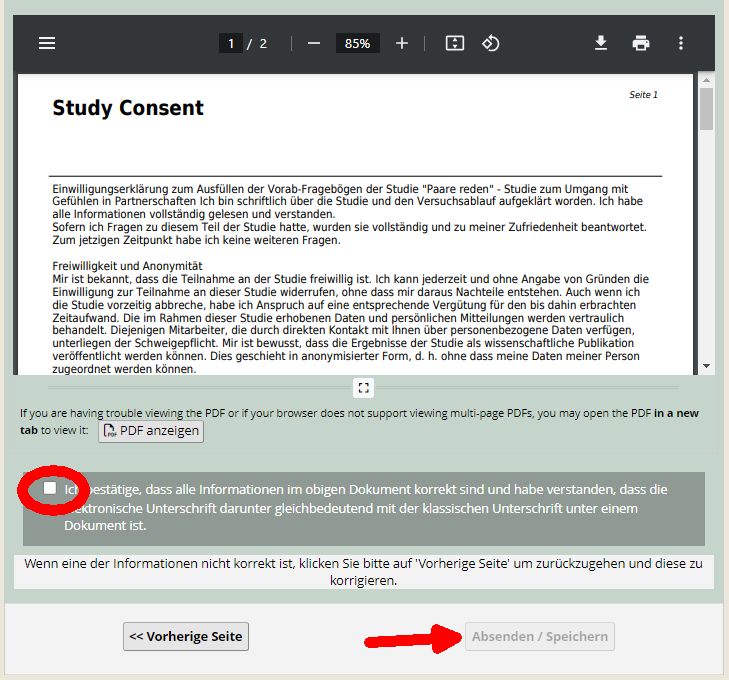 Das zweite Bild zeigt Ihnen den Study Consent als Rohversion.